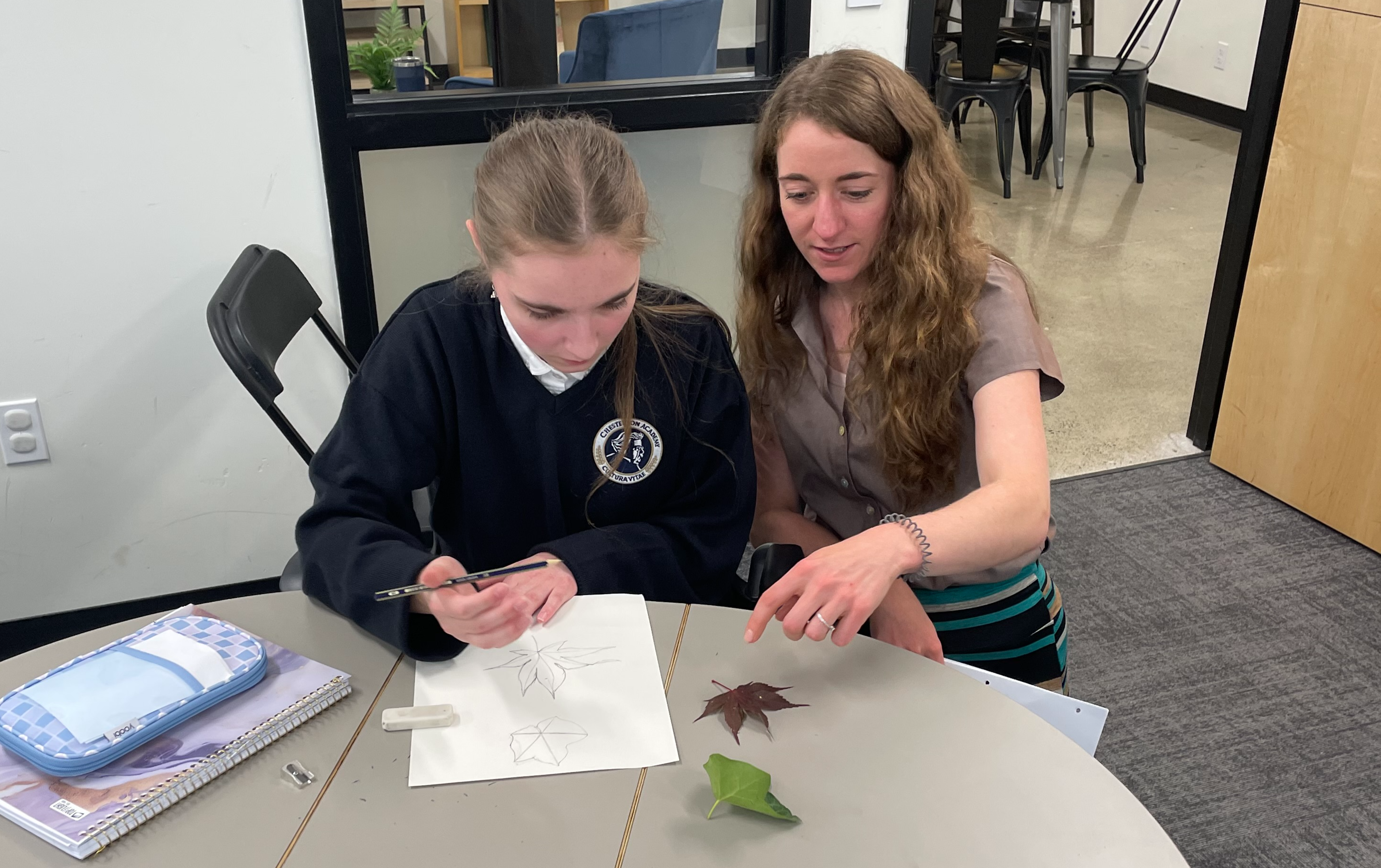 I teach at a small, Catholic classical high school that just opened its doors a few years ago. I like being part of a new project, and I love my students and coworkers! I also enjoy getting to teach a variety of subjects, including theology, Latin and art. I often find myself learning right alongside the students.