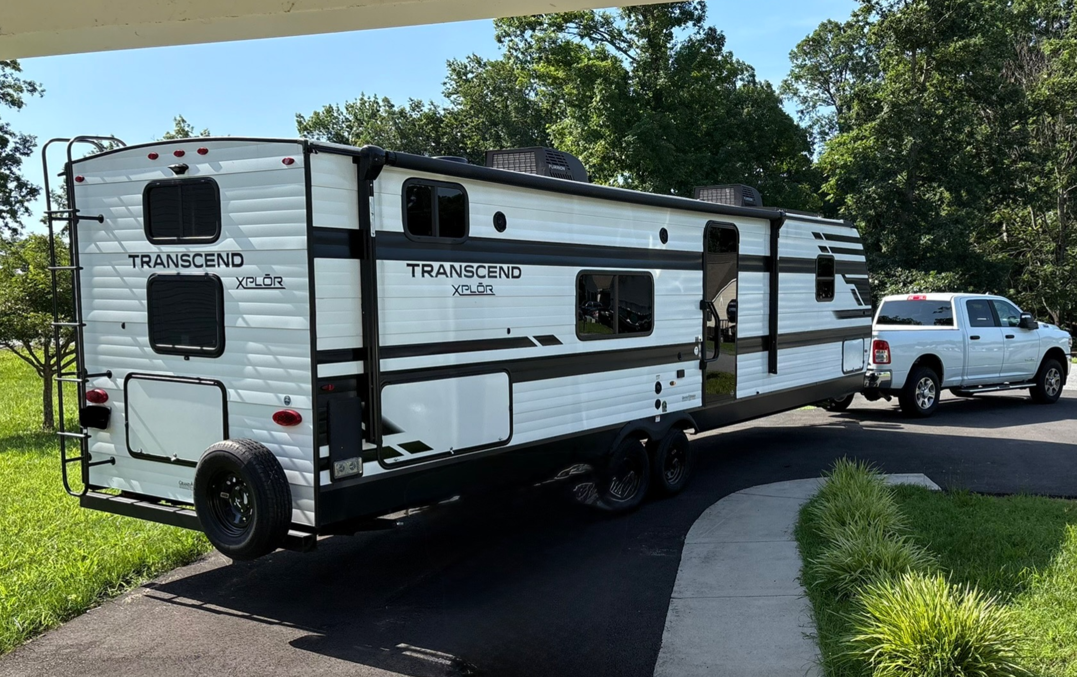 Our home includes three bedrooms and 2 ½ baths. We have a large living room and a patio outside that we built ourselves. Our family color is blue, and you’ll find the color frequently throughout our home. We have the sweetest neighbor next door to us and treats our son as her grandkid. When we travel, we stay in a Grand Design Transcend with plenty of space for everyone and our items.